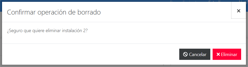 Desde el menú de acciones, el administrador puede eliminar una instalación que ya no sea necesaria. Se desvinculará la instalación de todas las versiones a las que estuviera asociada.