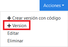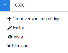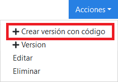 - Desde el listado de versiones, pulsando en el menú de una versión y seleccionando «+ Crear versión con código»: sirve para crear una versión física a partir de los datos de otra versión de cualquier tipo.